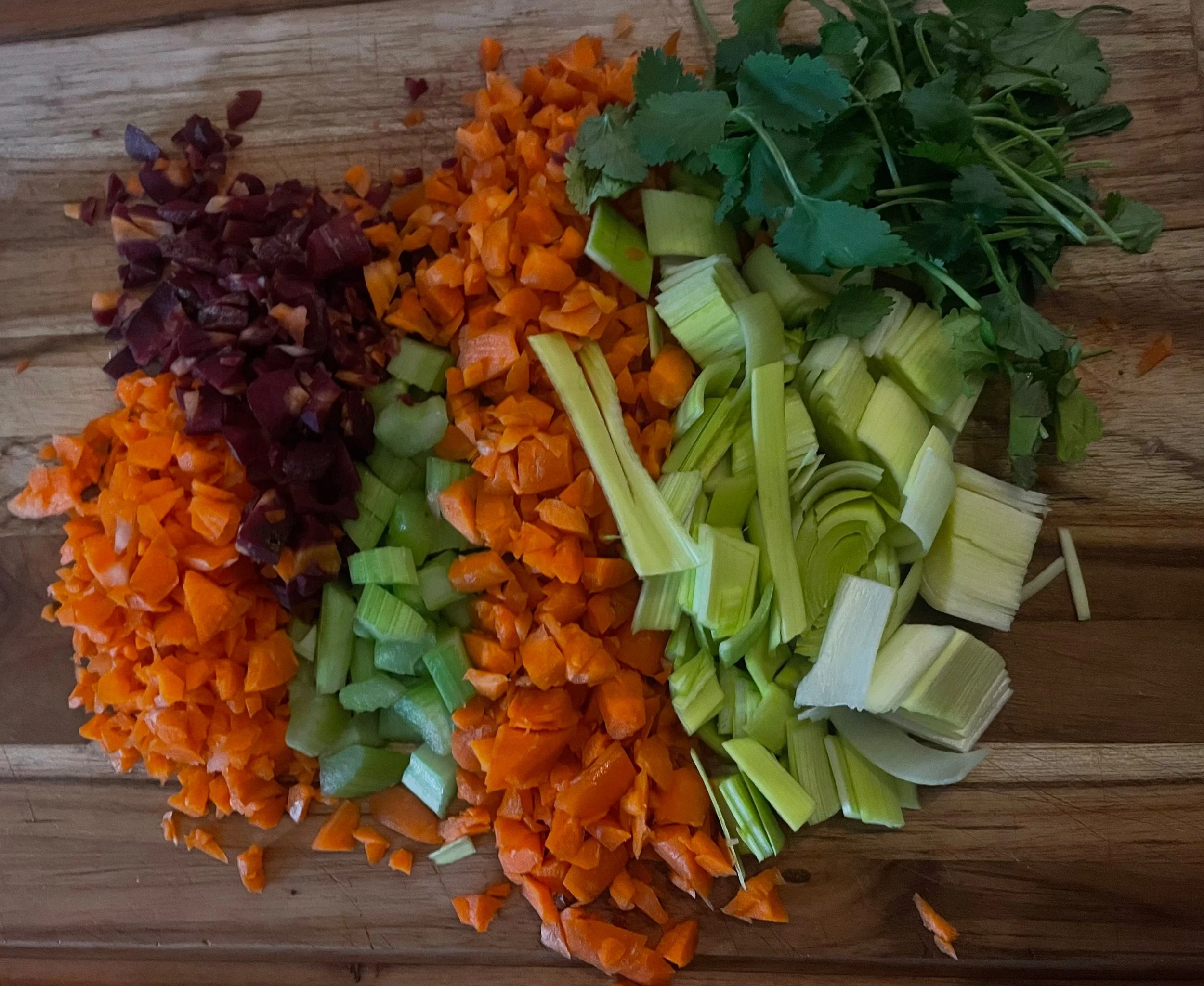 2. Then add in the rest of your vegetables, let cook on low for 5 minutes.