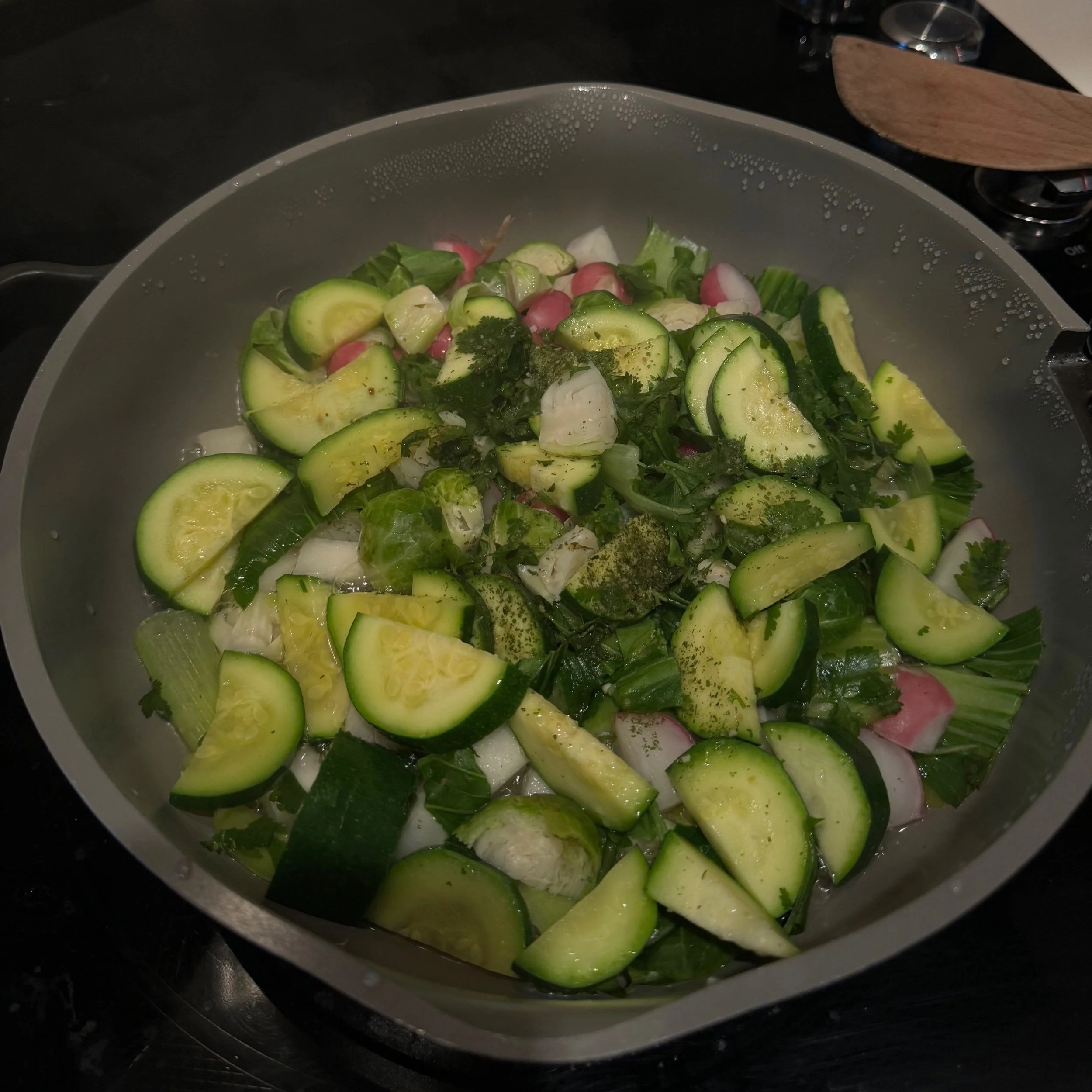 Fun fact you will rarely catch me eating salads. I have been lightly cooking / sautéing my vegetables for optimal & ease of digestion!! It’s a game changer.