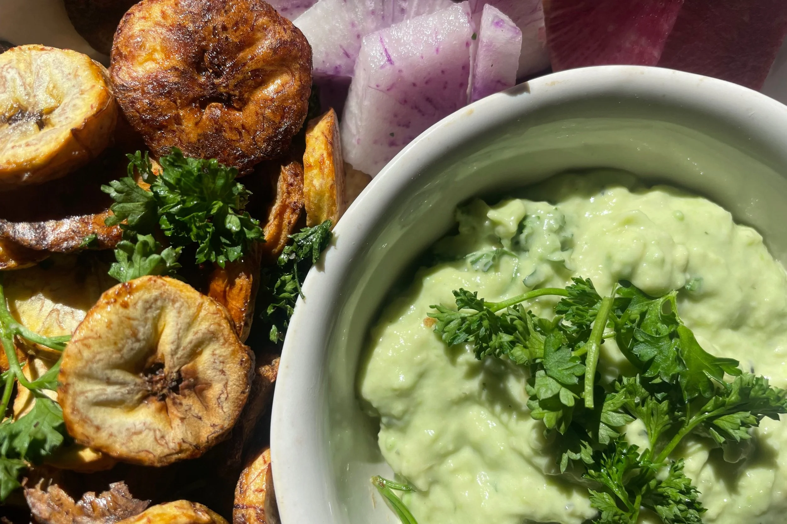 4. While those cook, slice and mash your avocado with the rest of the parsley, salt, lime juice, yogurt & hemp seeds.